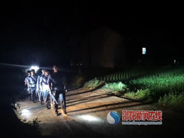 5月27日邵东县公安局搜捕组民警辅警负责清水塘村的搜查排查,以村马路为界,防止嫌疑人从东北边(核心圈)越过马路进入西南边。
