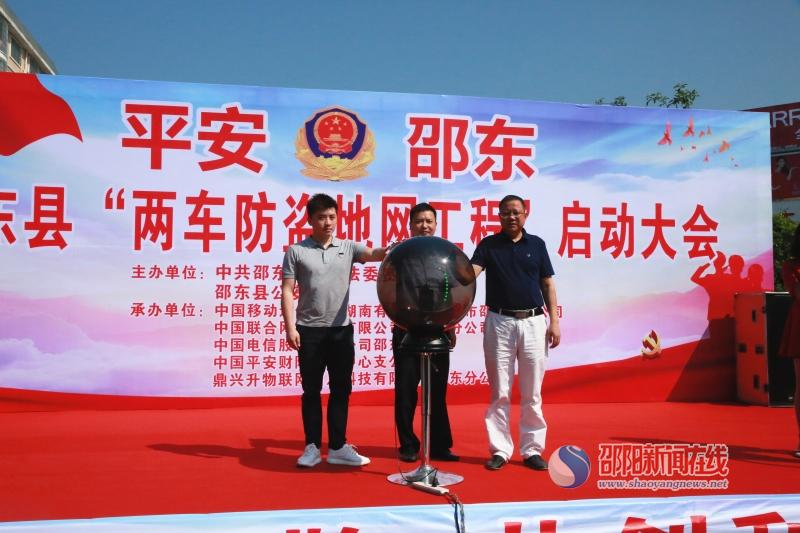 邵阳新闻在线讯(通讯员 高苗苗 赵睿)6月4日上午,邵东县在昭阳公园广场举行“两车防盗地网工程”启动仪式,邵东县副县长、公安局长谢伟宏,县委政法委副书记李治华,鼎兴升物联网有限公司董事长苏孝威共同点亮启动水晶球,标志着邵东县倾力打造的“两车防盗地网工程”立体化社会治安防控体系逐步成型,天网和地网工程交织,在全县形成“天罗地网”。