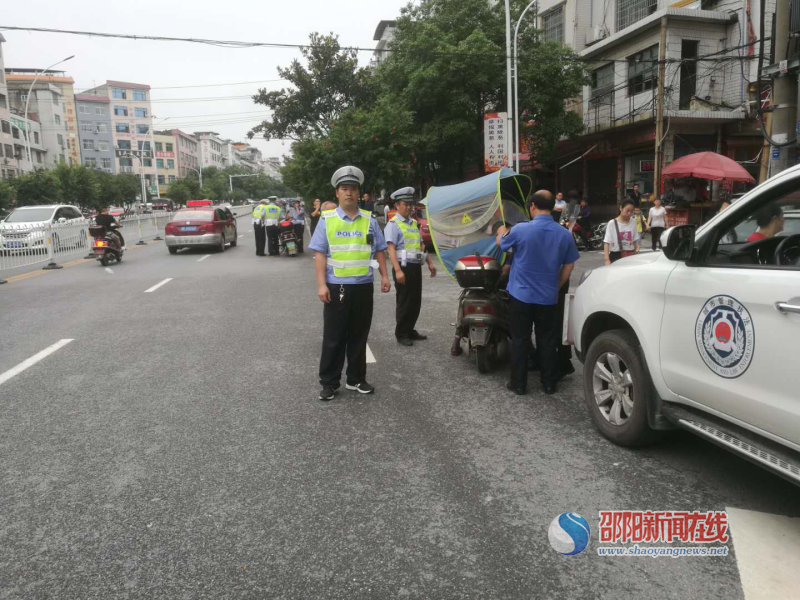 邵阳新闻在线讯(通讯员 陈贵清)为了更好的管理辖区道路交通秩序,加强辖区路面电动、二轮三轮摩托车管控工作,营造文明交通环境。6月13日,新宁交警、城管联合行动,组织开展摩托车交通违法、电动车遮阳伞集中整治行动。