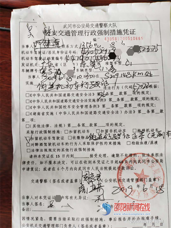 18日上午10时30分,该交管中队组织警力在S219线148公里处对过往的车辆进行例行检查。一辆从城步方向驶来的号牌为粤S7P**9的白色小车,执勤民警示意靠边停车接受检查,在检查过程中,细心的民警发现驾驶员吴某某提供的可能涉嫌伪造的可能。随后,民警将驾驶员及车辆带回大队作进一步检查。