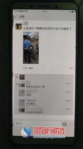 邵阳新闻在线讯(通讯员 李娜)6月19日下午16时许,邵东县公安局交警大队在邵东县汽车西站开展摩托车“打伞”违法行为整治行动时,一男子拿着手机在旁边拍摄视频,一边拍还一边辱骂交警是“土匪抢车、土匪进村”,同时还将视频上传到朋友圈,执勤民警发现后将其控制并移送至红土岭派出所。