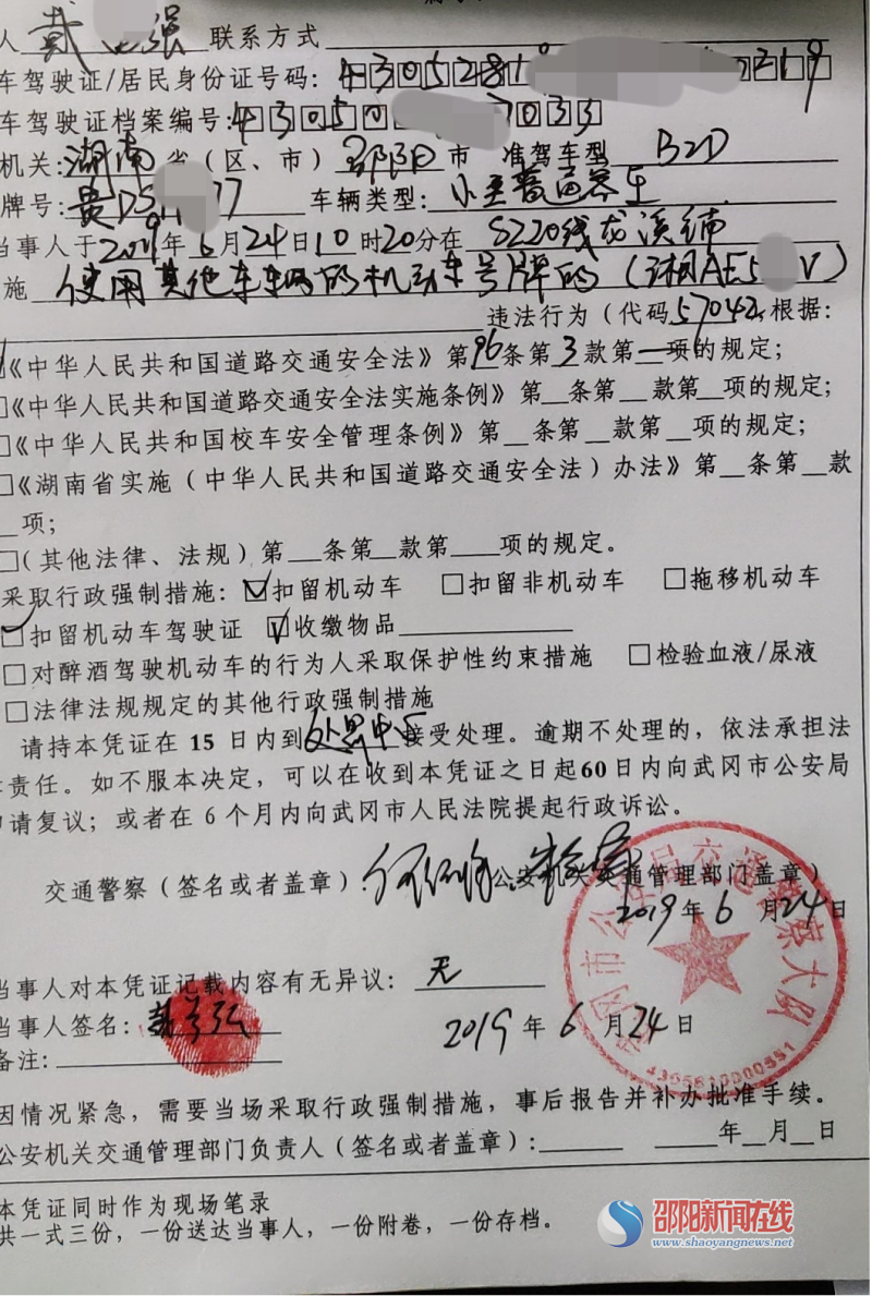 邵阳新闻在线讯(通讯员 刘丽蓉)为有效遏制涉牌涉证违法行为多发态势,维护全市道路交通安全形势总体稳定。6月24日,武冈市交警大队龙溪铺中队依托公安交通管理集成指挥平台缉查布控系统成功查获一起使用其他车辆机动车号牌的违法行为,切实消除了道路交通安全隐患。
