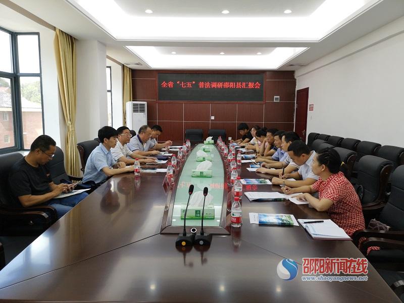 邵阳新闻在线讯(通讯员 谢静峰 刘珊瑜)6月27日上午,省司法厅普法与依法治理处处长刘刚魁带领调研组到邵阳县召开“七五”普法工作专题调研座谈会,市司法局副局长金碧大、法制宣传科科长颜建良、法制宣传科副科长贺鸿、邵阳县司法局分管法治工作领导谢静峰,法制宣传股股长罗小亮以及司法所负责人参加了座谈。