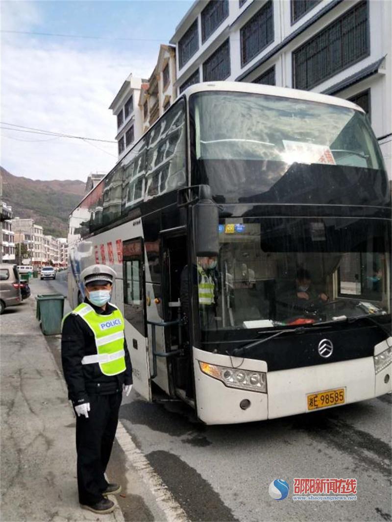 邵阳新闻在线讯(通讯员 吴艳红)2月18日,是2020年春运最后一天,新邵交警龙溪铺中队在S217省道楠木村路段持续开展疫情防控工作和春运交通安全检查,一辆新邵龙溪铺驶往广州方向的湘E985**大型客运车经过此地,民警对此车进行了重点检查,对车上人员的疫情防控措施到位情况进行了仔细检查,并叮嘱驾驶员切务酒后驾车、疲劳驾驶、超速行驶,确保安全驾驶。这是新邵交警开展疫情防控工作和春运工作以来的一个日常工作缩影。