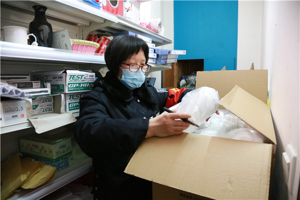 图为李灵芝清点部分疫情物资