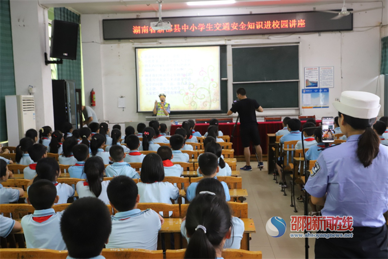 邵阳新闻在线讯(通讯员 吴艳红)为加强校园交通安全宣传工作,增强广大学生的交通安全意识和自我保护意识,有效预防和减少学生道路交通事故的发生,结合当前交通问题顽瘴痼疾整治工作,6月23日下午,新邵交警大队宣教警官走进县城酿溪镇三小,利用网络直播的方式为该校四年级两个班90多名师生送上一堂交通安全知识课。
