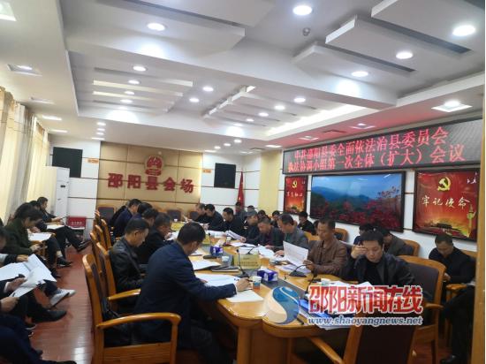 会议首先由周自珍同志传达学习中央(省、市)有关全面依法治国(省、市)会议精神,强调全面依法治县工作的重要性,并主持审议《中共邵阳县委全面依法治县委员会执法协调小组工作细则》。