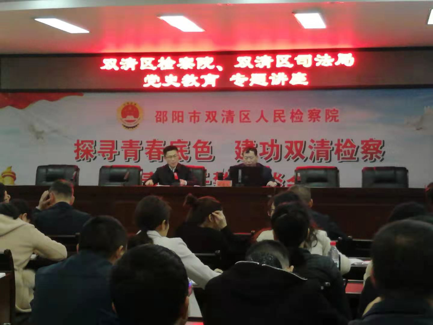 邵阳长安网讯(通讯员 姚林)3月17日上午,邵阳市双清区司法局、双清区人民检察院共同开展了党史专题教育活动。活动邀请了邵阳市委党校姚海波进行了党史教育专题讲座。