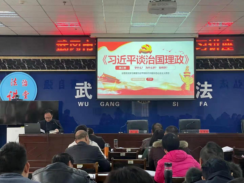观看结束后,该局负责人传达了邵阳市司法行政队伍教育整顿推进会议精神,并为全体司法行政干警做了《习近平谈治国理政》第三卷专题讲座。