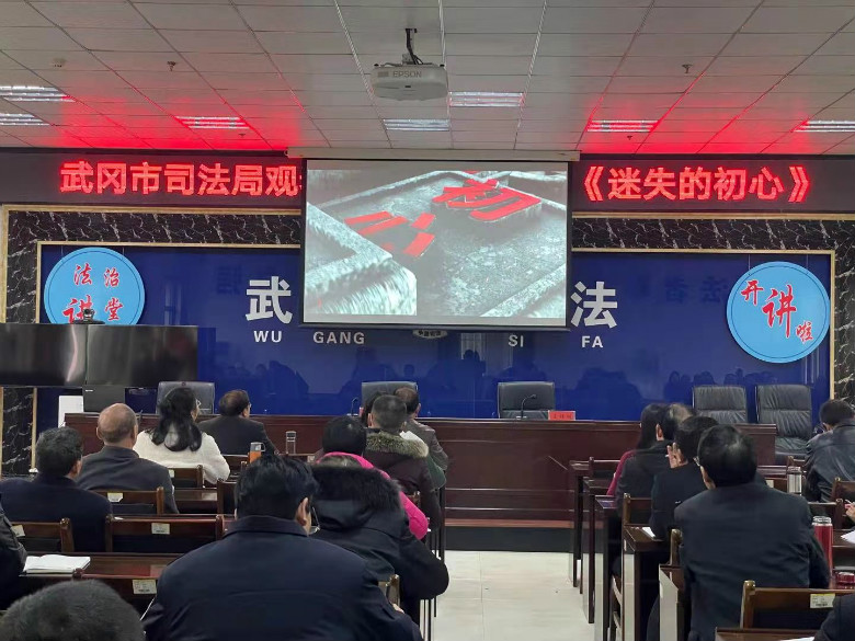 邵阳长安网讯(通讯员 蔡玉琴 曾小辉)为深入贯彻落实政法队伍教育整顿有关部署要求,教育引导司法行政干警增强廉洁自律意识,做到知敬畏、存戒惧、守底线,3月23日上午,武冈市司法局组织全体司法行政干警和法律服务机构负责人集中观看廉政教育警示片《迷失的初心》。