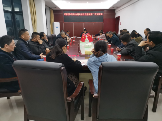 邵阳长安网讯(通讯员 杨巧云)4月6日,邵阳县司法局党组书记、局长周自珍主持召开了司法行政队伍教育整顿第二次座谈会议。此次会议邀请了省、县人大代表、政协委员、企业家代表、律师代表、公证员代表、司法所代表、案件当事人代表、人民陪审员代表、特约监督员代表等30余名人员参加,征求对司法行政队伍教育整顿工作的意见建议。