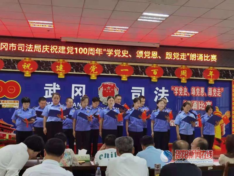 邵阳长安网讯(通讯员 蔡玉琴 )6月29日,武冈市司法行政系统举行庆祝建党100周年“学党史、颂党恩、跟党走”朗诵比赛,进一步唱响主旋律,提振精气神。