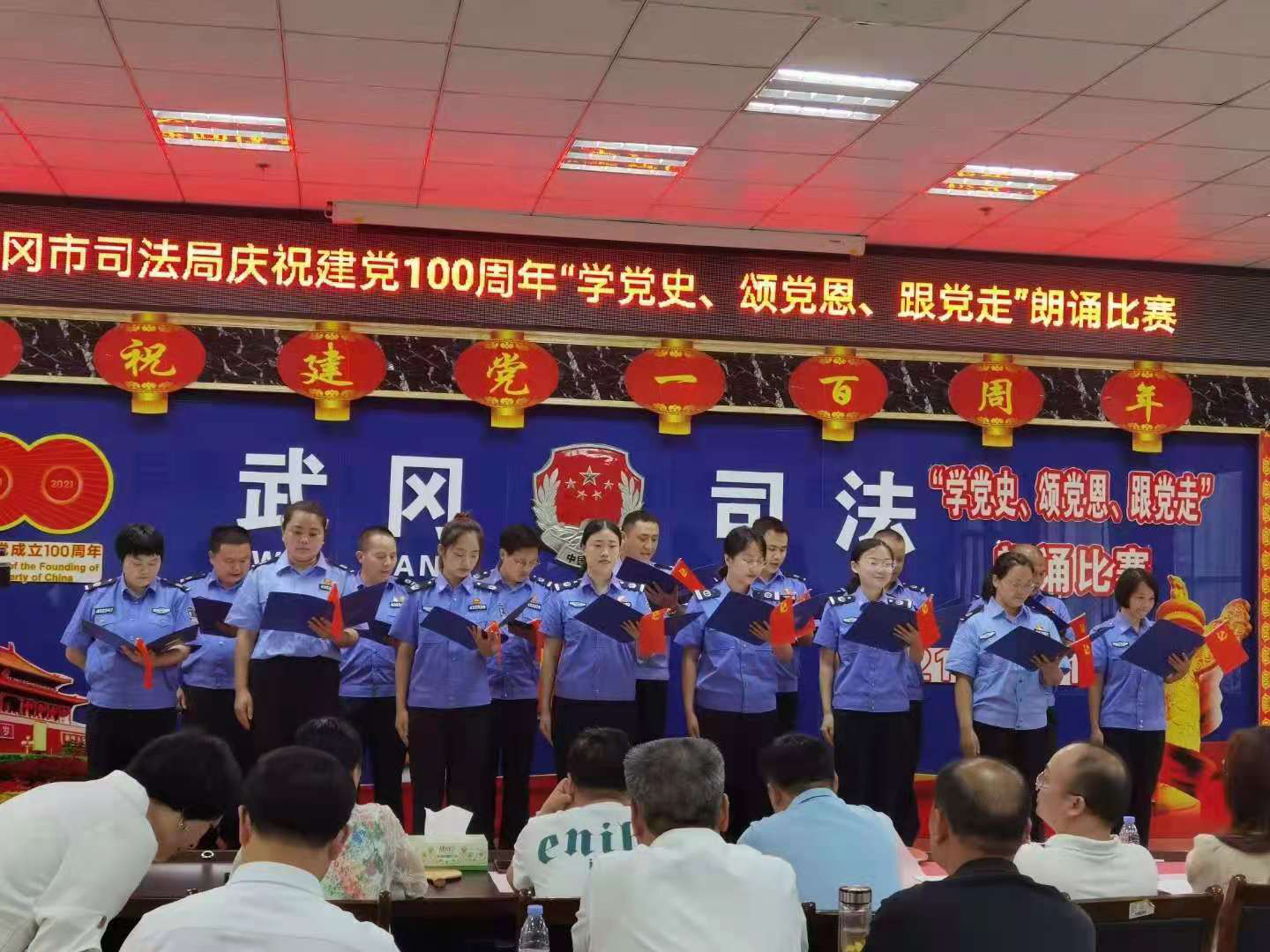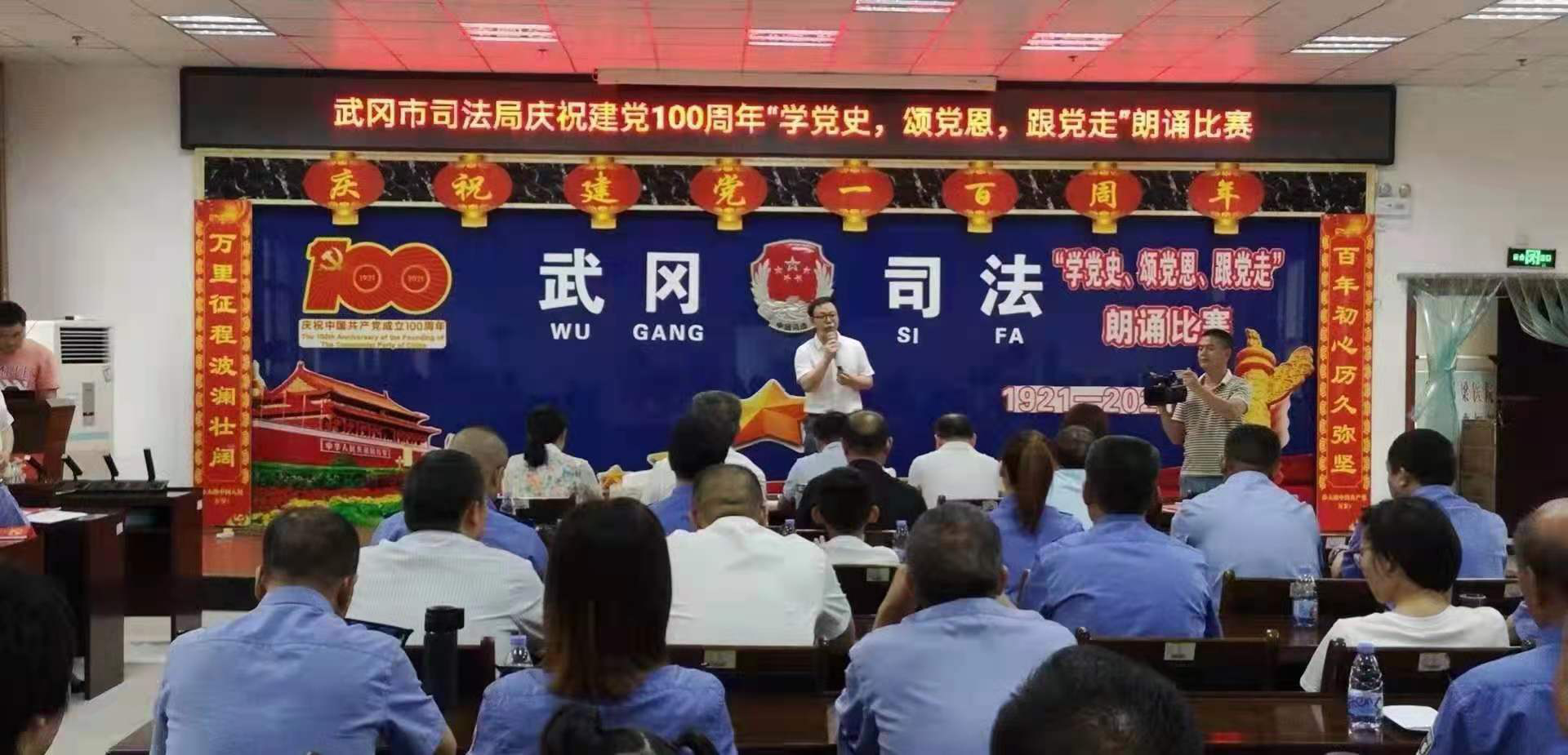 邵阳长安网讯(通讯员 蔡玉琴)百年征程波澜壮阔,百年初心历久弥坚。为隆重庆祝中国共产党成立100周年,6月29日下午,武冈市司法行政系统举办庆祝建党100周年“学党史、颂党恩、跟党走”朗诵比赛,进一步唱响主旋律,提振精气神。活动邀请武冈市委宣传部副部长朱耀坤、武冈市总工会书记唐余浩、副主席鄢武山、团委副书记杨珍珍、武冈市融媒体中心周浩宇等单位有关负责同志担任评委。