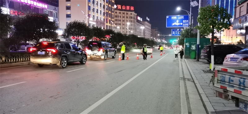 二是狠抓重点区域,严查交通违法。新宁交警结合辖区实际,以重点路口、主要路段为重点管控区域,增设执勤岗点,实行包保责任制,成立巡逻小分队,严格定人、定岗、定责任,强化道路交通疏导和管控,按照邵阳交警支队要求,统筹兼顾,集中优势警力,针对城区、农村、城乡结合部和餐饮、娱乐场所等重点区域,节日期间集中开展了夜查酒驾统一行动,确保不发生严重道路交通拥堵和较大道路交通事故。