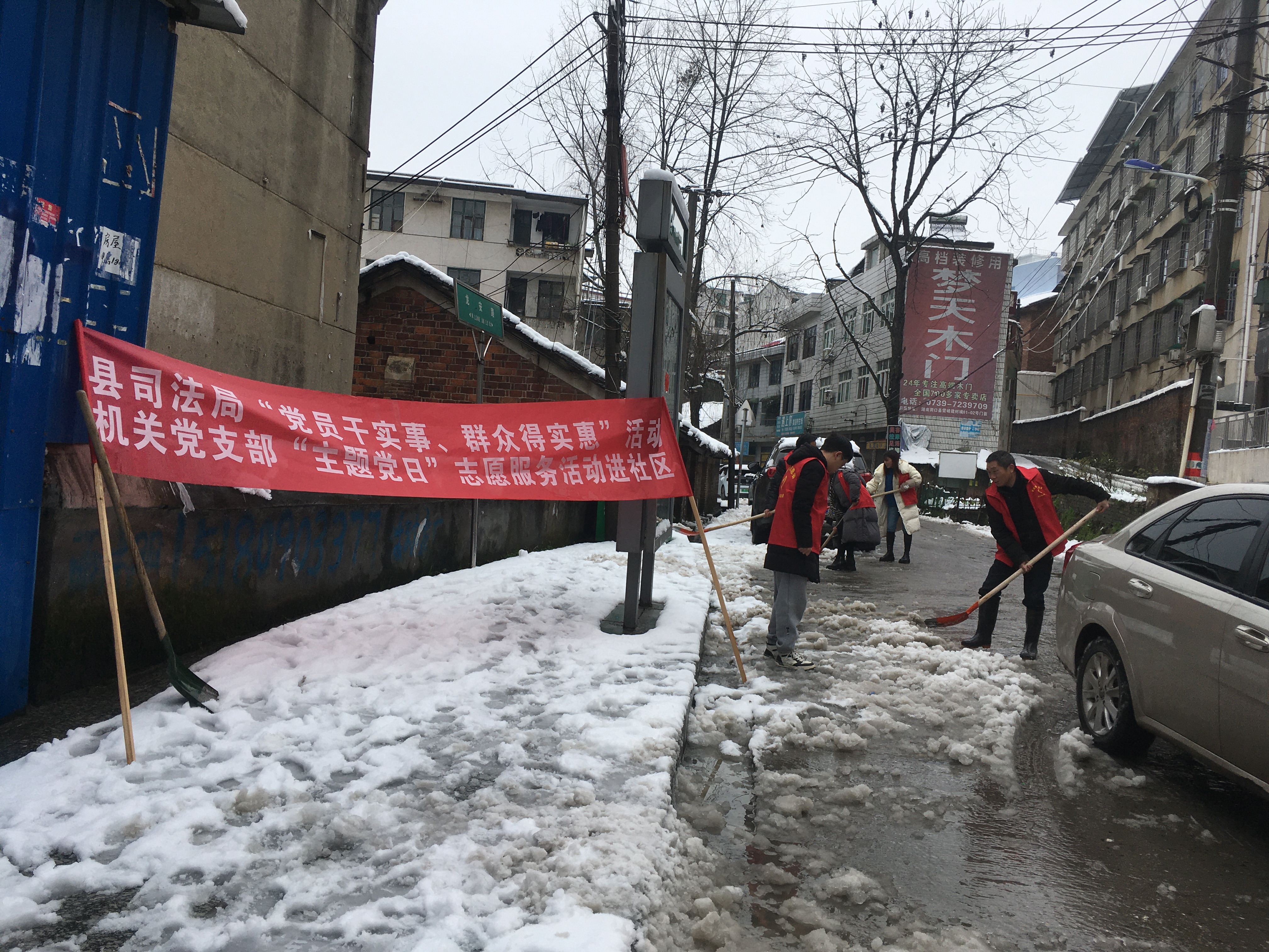 邵阳长安网讯(通讯员 魏丽琼)2022年2月23日上午8点,洞口县司法局结合主题党日活动,由党组书记、局长王立平带队,组织本单位干部职工开展扫雪除冰地志愿活动。