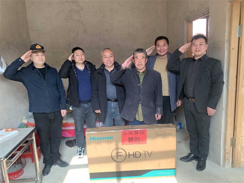 黄新放老人现年71岁,是带病回乡退役老兵。因是孤寡老人,时常感到孤独。他最大的心愿就是能有一台电视机,让家里变得热闹一点。邵东市关爱老兵志愿者协会得知老人心愿后,立即行动,携手邵东市军味餐饮公司,帮老人实现了心愿。