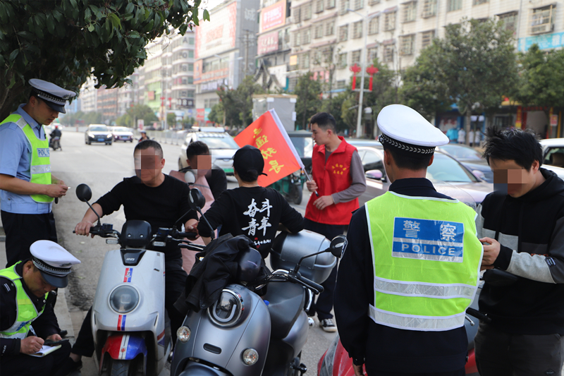 当天下午,交警和志愿者们分别在建设路与衡宝路交叉口、衡宝路与兴和大道交叉口引导过往群众遵守交通规则,文明出行。民警和志愿者们对行人、非机动车闯红灯、不走斑马线的交通陋习及时上前制止,以温馨提醒的方式对过往行人和电动车随意穿插马路等交通违法行为进行劝导,告知其存在的安全隐患及危害。