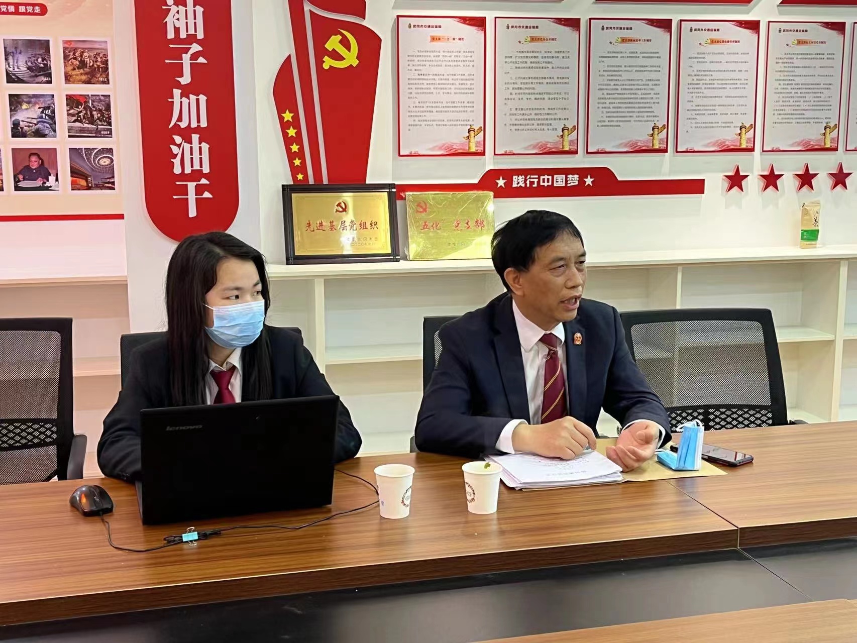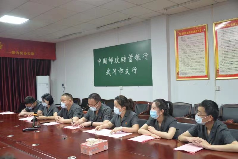 为防范化解金融风险,维护金融安全,武冈市人民法院副院长蒋登忠、院三党支部党员一行走访中国邮政银行武冈市支行。