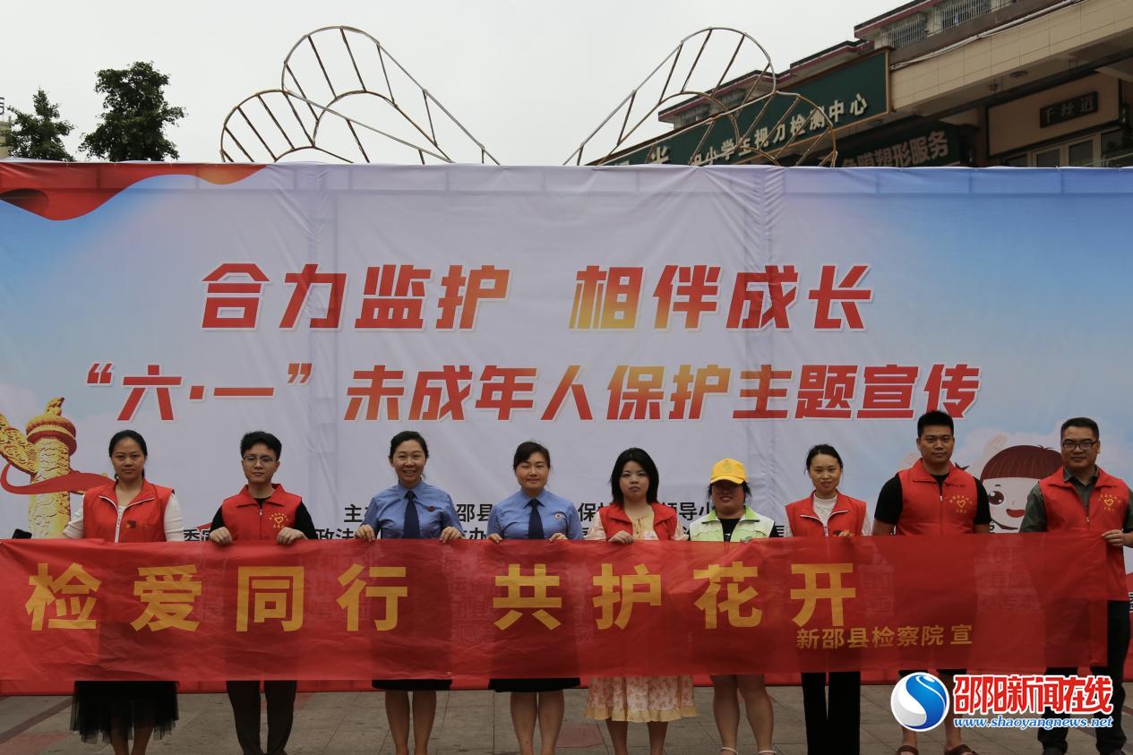 5月31日,新邵县人民检察院在湾田广场开展“检爱同行 共护花开”集中宣传活动。